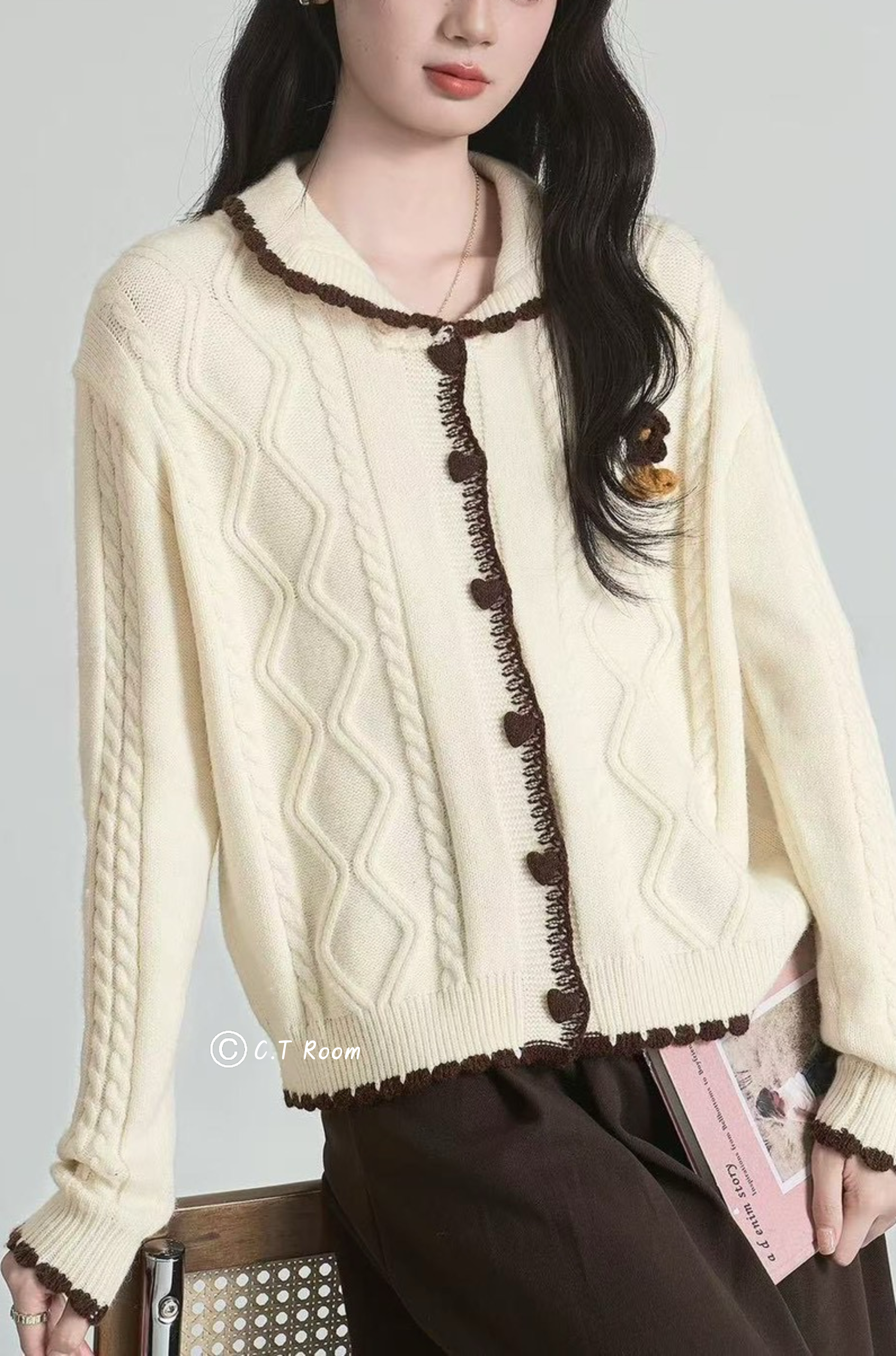 市集熱賣🔥娃娃領滾邊花花毛衣