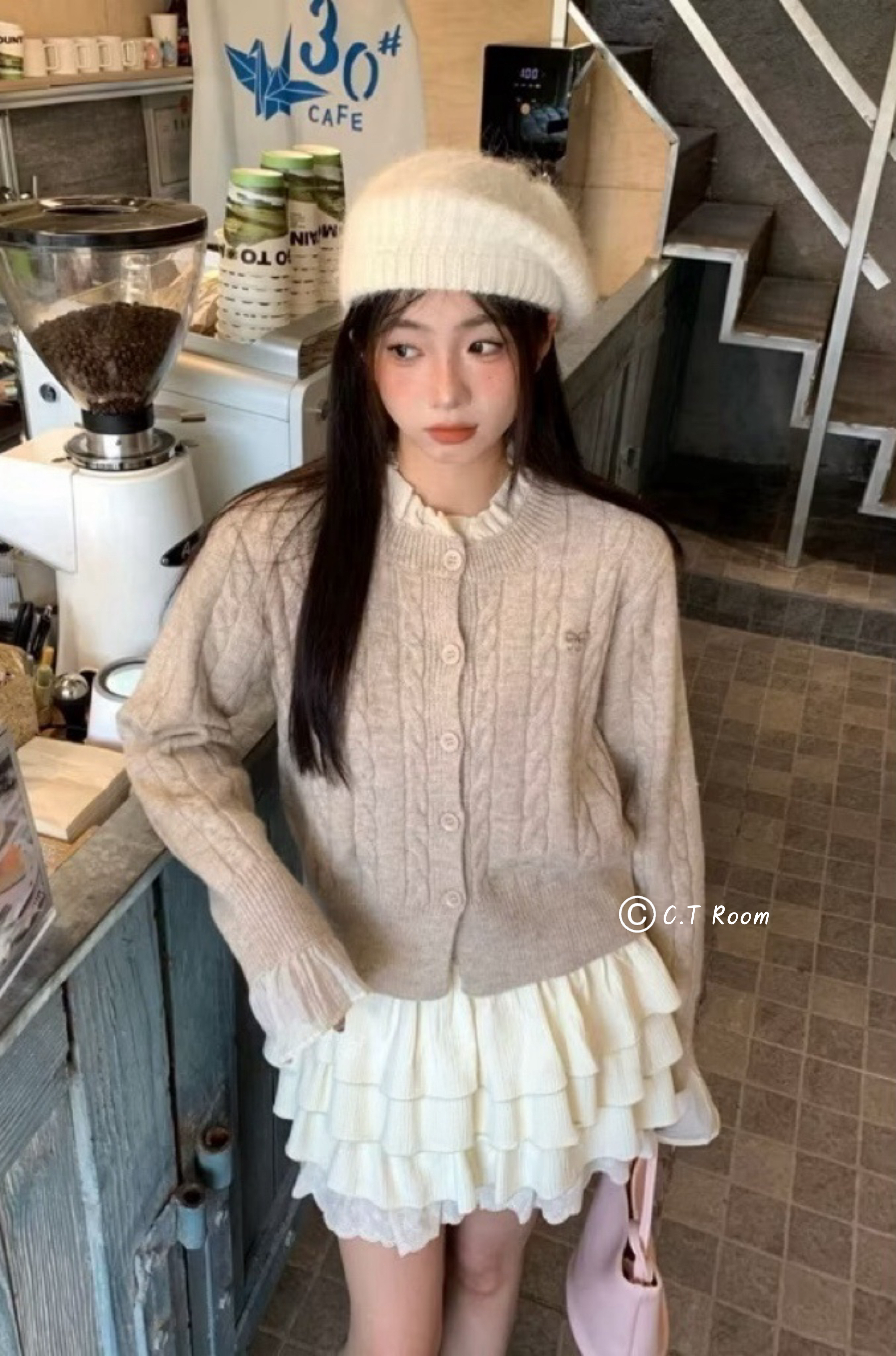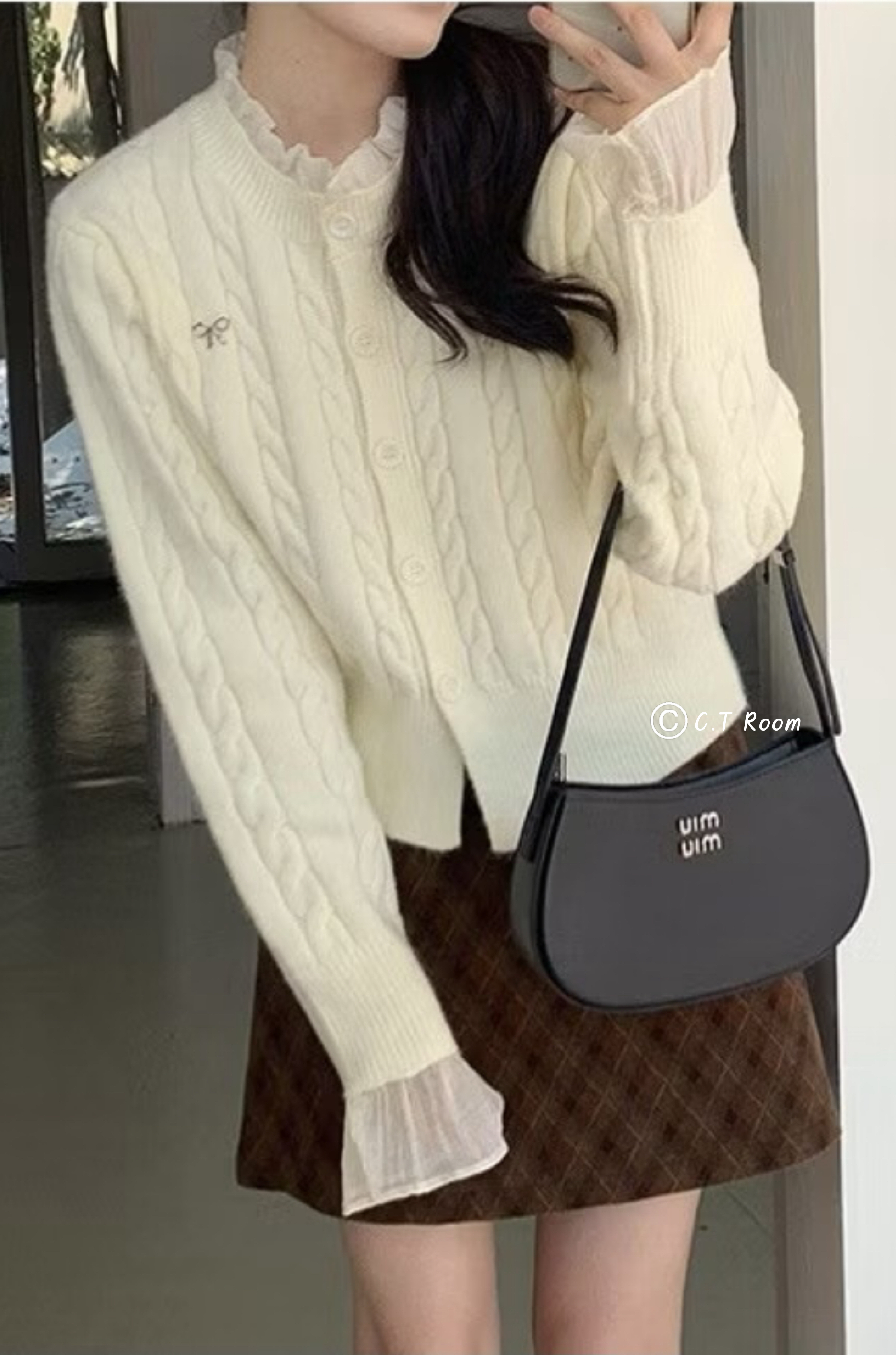 熱賣款🔥法式蕾絲蝴蝶結收腰針織毛衣